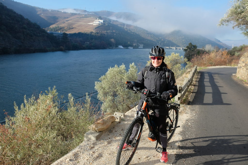 Da wir im Dourotal radeln wollten, machten wir uns auf den Weg nach Peso da Régua. Das portugiesische Mautsystem ist konfus. Bei manchen Strecken zieht man Tickets, dann braucht man wieder Easy Toll Cards, die man in Postämter bekommt oder man muss sich beim Grenzübergang an Welcome Points registrieren, was man aber vorher wissen muss, weil es keine zweite Chance dazu gibt. Peso de Régua hat schöne Stellplätze direkt am Fluss Douro. Der Ort selbst ist bescheiden, aber die berühmten Weine sehr lecker. Unsere Radtour durch die Weinberge am Fluss Douro entlang war wunderschön, allerdings war es kalt und mehr als 20 km waren nicht drin.