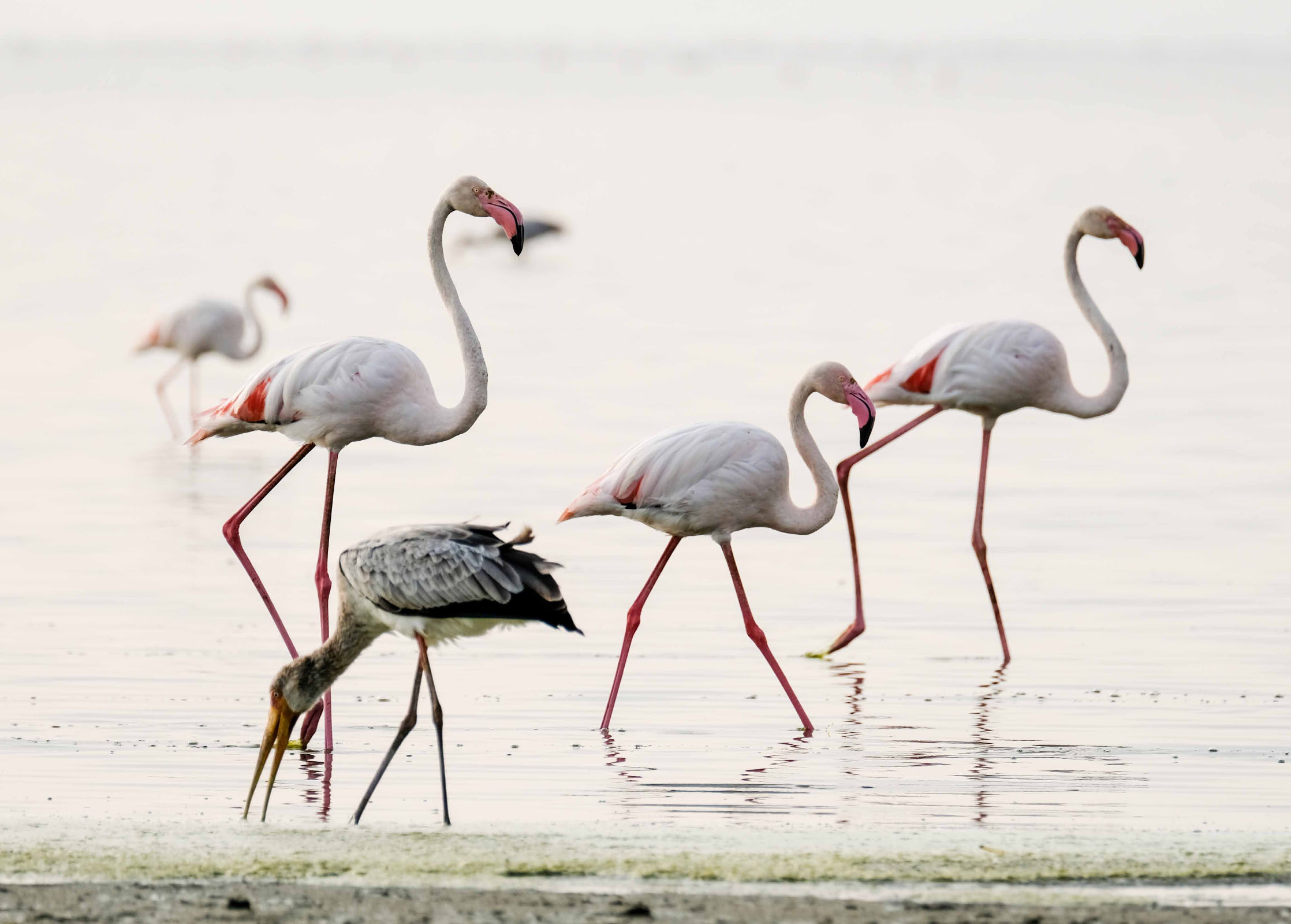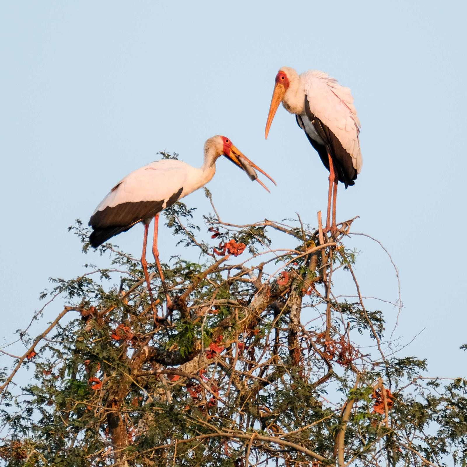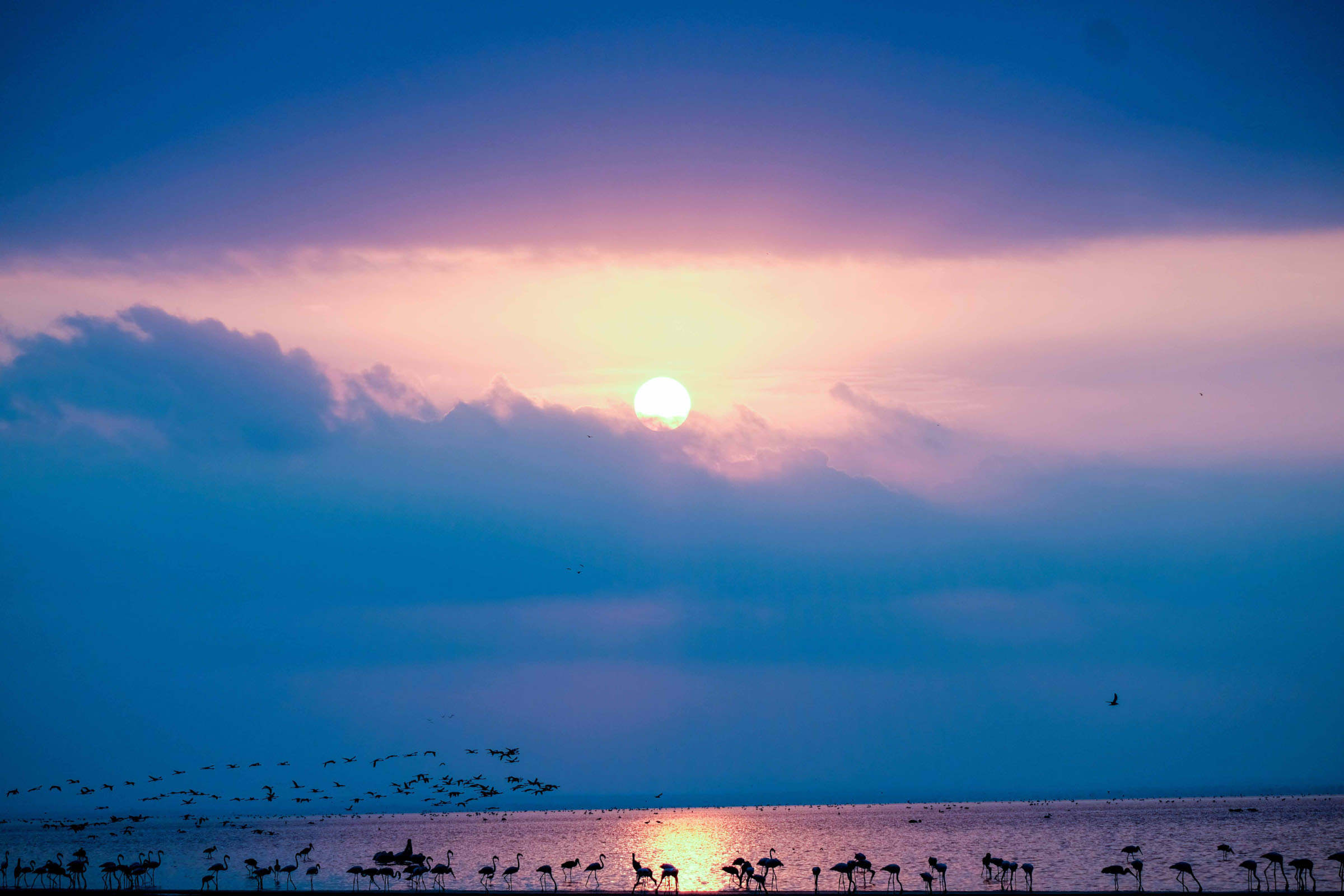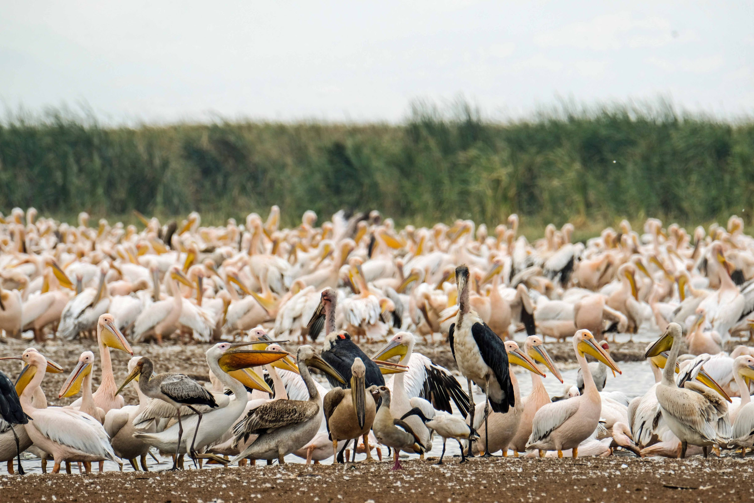Der 1960 gegründete Manyara ist der einzige Rift-Valley-Nationalpark im Norden Tansanias. Wo in früheren Zeiten die Jeeps von Hardy Krüger und John Wayne über die Ebenen rund um den See rasten, um für den Dreh des Hollywood-Klassikers „Hatari“ Tiere einzufangen. Mehr als zwei Drittel des Parks werden von dem 950 m hoch gelegenen, abflusslosen See eingenommen, der Heerscharen von rosa schimmernden Flamingos Heimat ist. Wir haben wieder eine Special Campsite direkt am See. Pelikane, Marabus, im Hintergrund Gnus, Zebraherden aber auch Giraffen lassen uns die Wunder der Natur bestaunen. Wir sind ganz im Glück. Es gibt einen Hippopool, auch hier gesellen sich zu den Hippos Unmengen von Vögeln.