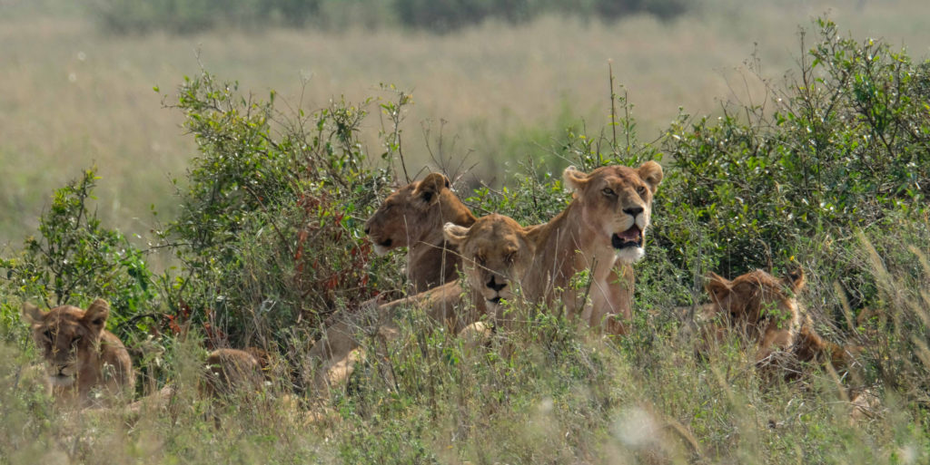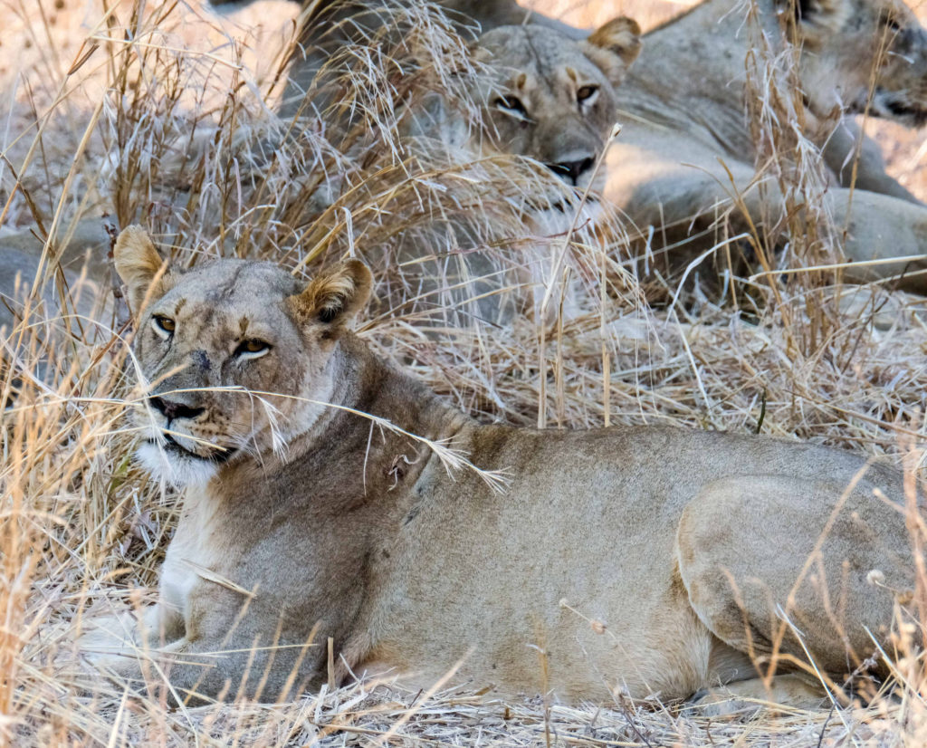 Was diesen National Park für uns ausgemacht hat, waren die vielen Löwen die wir gesehen haben. Auf einem Game Drives entdecken wir ein Rudel Löwen die gerade an ihrem erlegten Wild knabbern. Dietmars Kamera macht nur noch klick, klick…Plötzlich steht der männliche Löwe auf, der immer als erster sich satt fressen darf, und läuft ganz gemächlich auf uns zu, an unserem Auto vorbei und sucht sich ein schattiges Plätzchen zum schlafen ein paar hundert Meter entfernt. Wir sind ganz aus dem Häuschen, beobachten dann noch eine Weile die fressenden Löwinnen und fahren weiter. Später sehen wir noch ein Rudel von 13 Löwen die ihren Schlafplatz wechseln.
