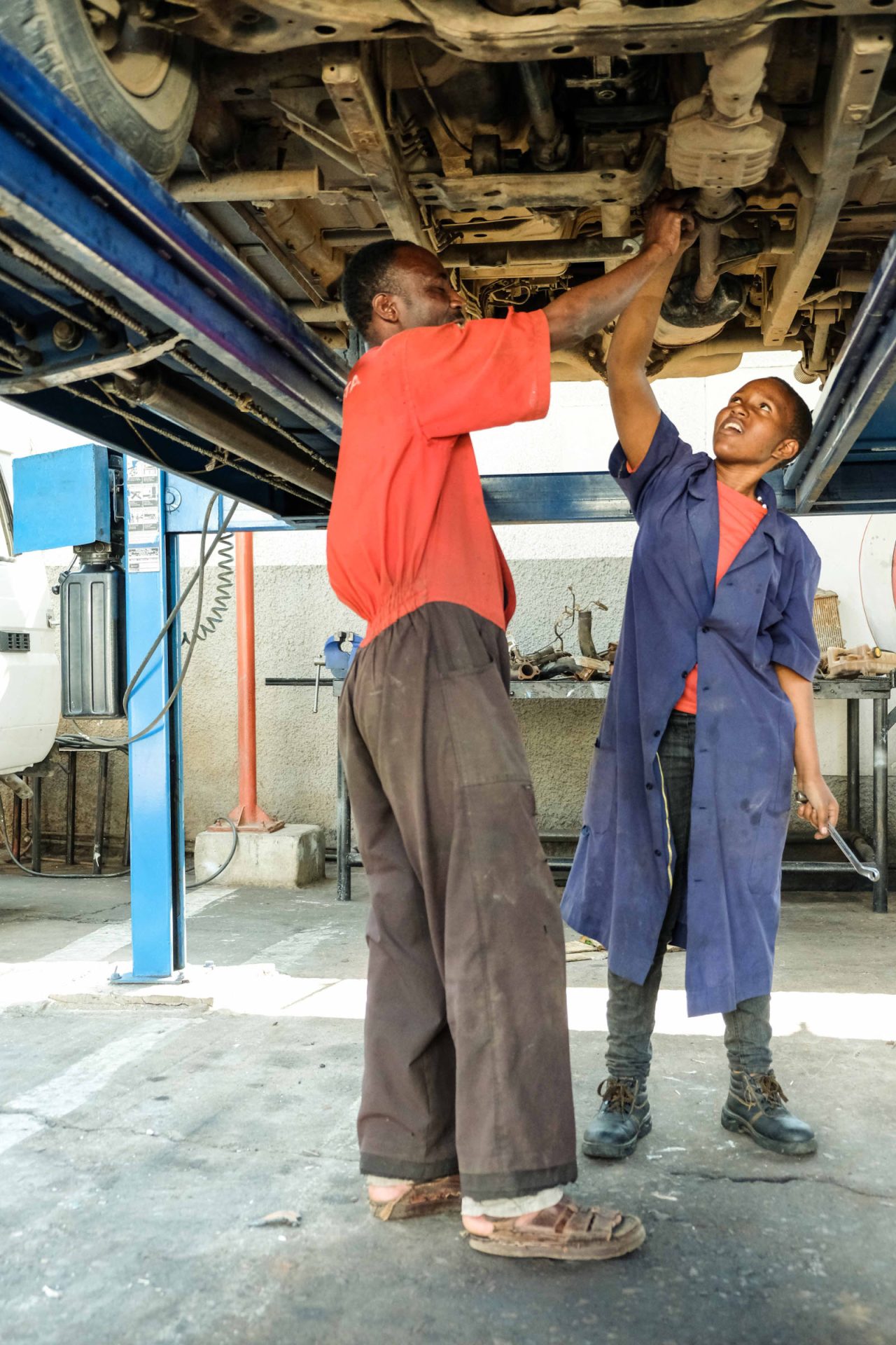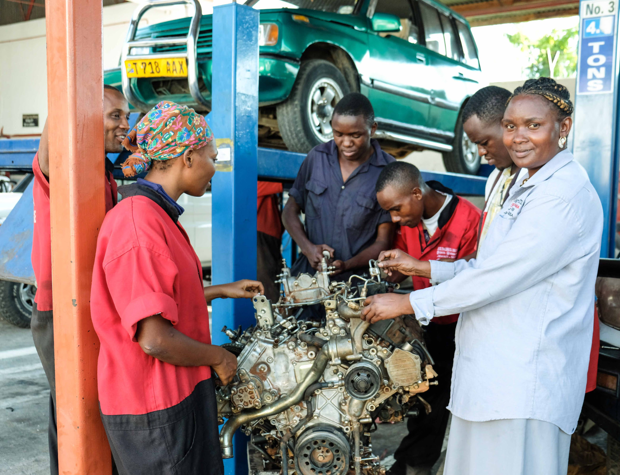 Mwanza liegt auch direkt am Lake Victoria, ist eine sympathische größere Stadt und hat eine Toyotawerkstadt, wo wir einen kleinen Defekt am Auto checken lassen. Hier gibt es eine Gruppe von Lehrlingen, zwei Mädchen sind auch dabei, die an einem großen Motor zu Lernzwecken rumschrauben. Dietmar fotografiert und verschenkt die ausgedruckten Bilder zur großen Freude der Gruppe. Der Meister hat den Schaden schnell behoben, wir müssen dafür noch nicht einmal etwas bezahlen.