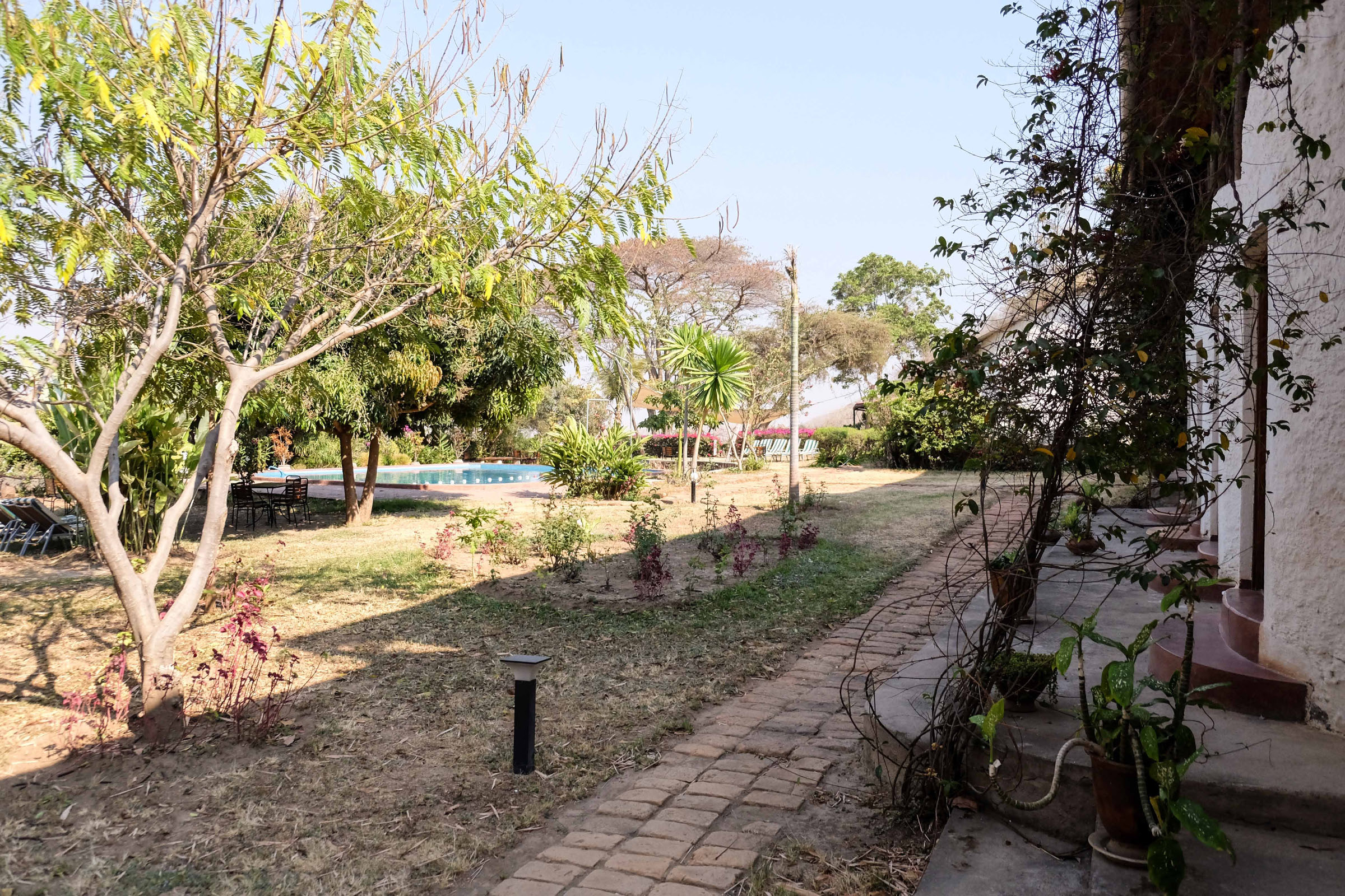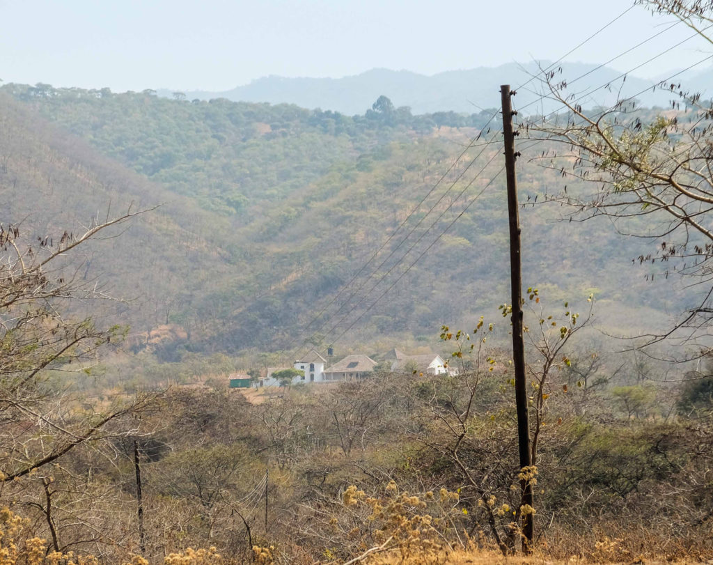 Wir übernachten in der Mutinondo Wilderness Lodge. Die Lodge liegt in einer großen Bergszenerie mit buckligen, von Urwäldern umrahmten Felsrücken. Morgens, in unserem Charlet, können wir von unserem Bett aus den Sonnenaufgang und die schöne Landschaft bewundern.