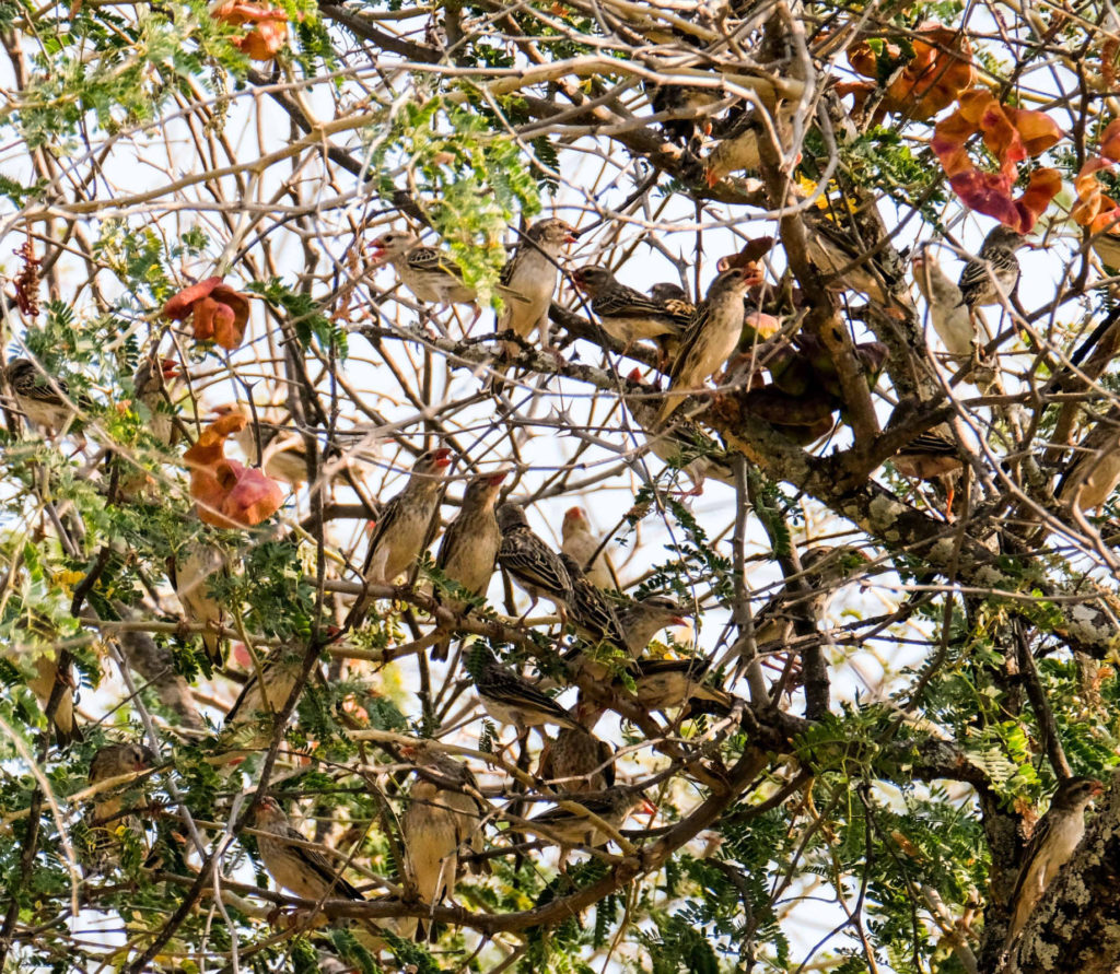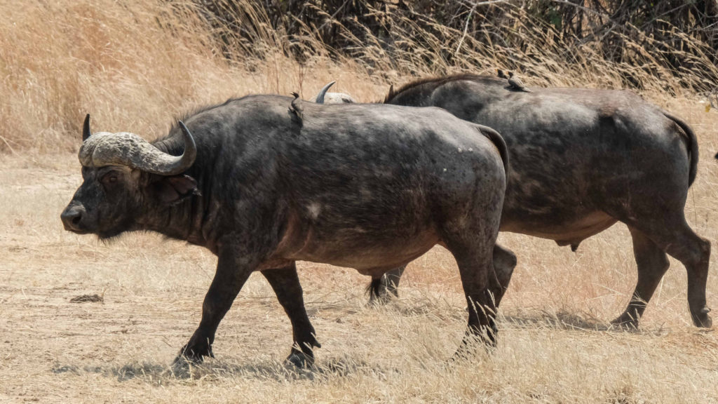 Hippos und Krokodile, Vögel die auf den Hippos spazieren laufen und sie dabei von Parasiten befreien. Wir haben unsere Ferngläser und Dietmar seine Kamera nicht mehr aus der Hand gelegt. Ab und zu allerdings auch nicht unsere Fliegenklattschen. In vielen Parks treibt nämlich die Tsetse-Fliege ihr Unwesen, der Biss tut weh und infizierte Fliegen können die Schlafkrankheit übertragen. Deswegen war es nicht immer möglich die Autoscheiben runtergelassen. Die Tsetse-Fliegen die es trotzdem rein geschafft haben, wurden von uns gnadenlos gekillt. Klaus, als erfahrener Psychologe, meinte man muss hier lernen, durchaus aggressiv und nachdrücklich zu handeln. Niemand von uns ist von einer Tsetse-Fliege gebissen worden.