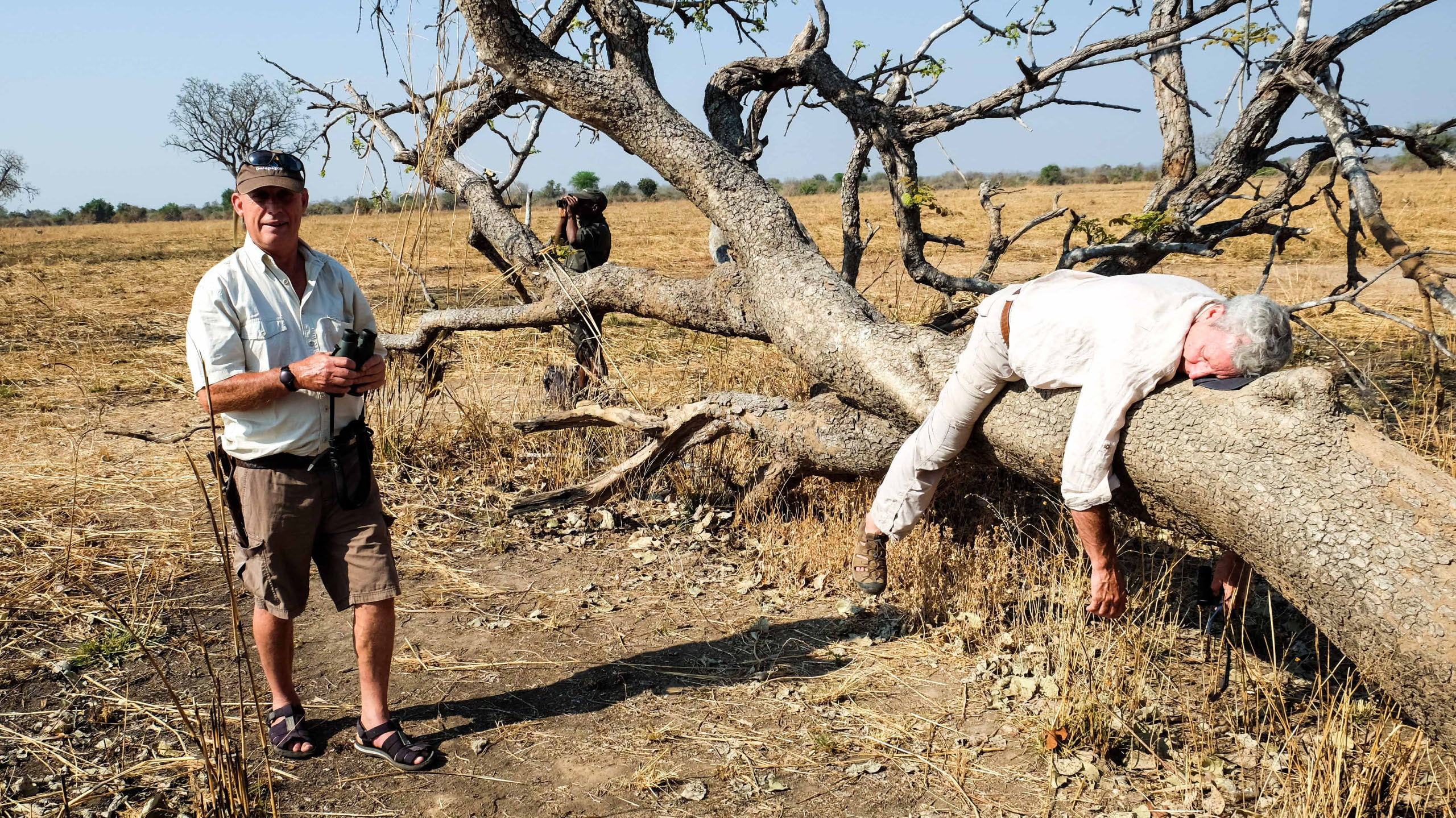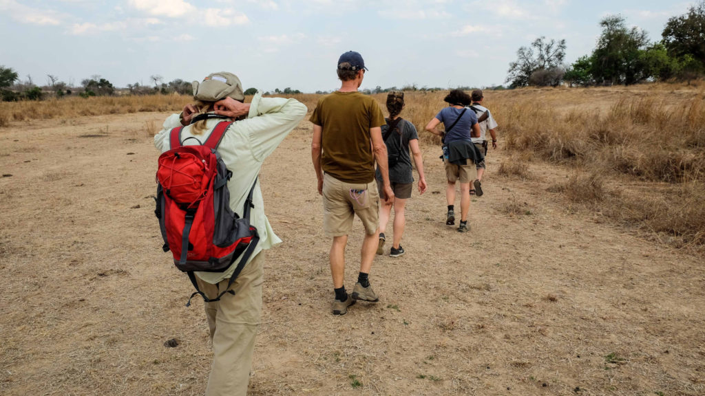 Wir machen wieder einen Walk. Mit dem Landcruiser geht es zum Ausgangspunkt. Unterwegs begegnen uns wieder die Wilden Hunde. Der Walk ist ganz schön anstrengend, weil es ab 8:30 Uhr sehr heiß wird. Auf den Walks begleitet uns immer ein Ranger mit Gewehr, auch Marc hat eines. Elefanten sind hier sehr nervös, weil Wilderern viele von ihnen abgeschossen haben um an das Elfenbein zu kommen. Das Elefantengedächnis vergisst nicht so schnell.