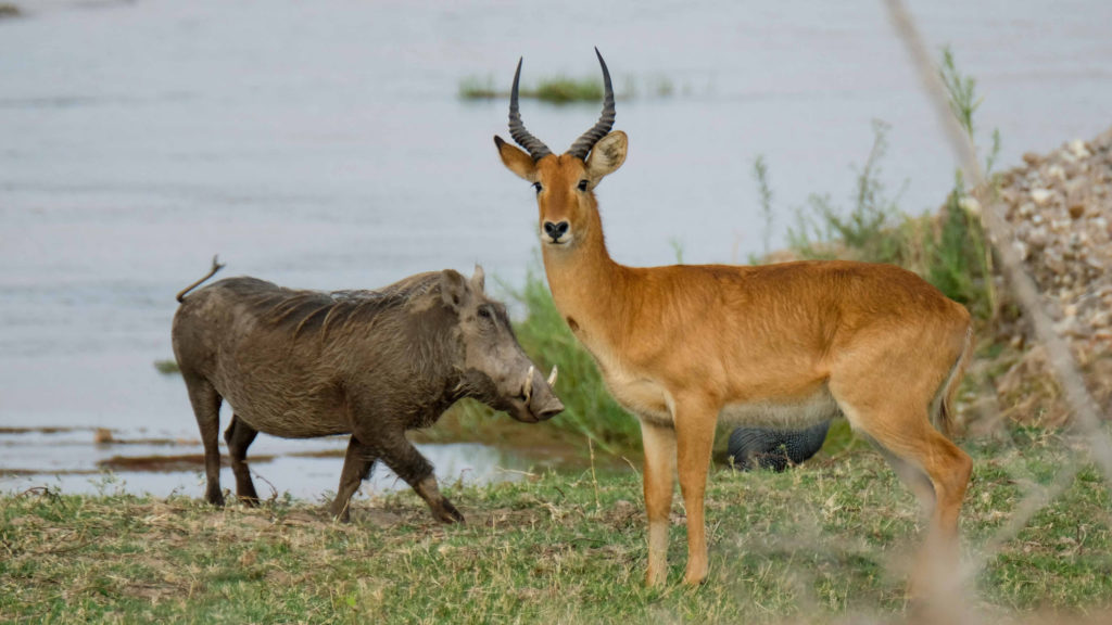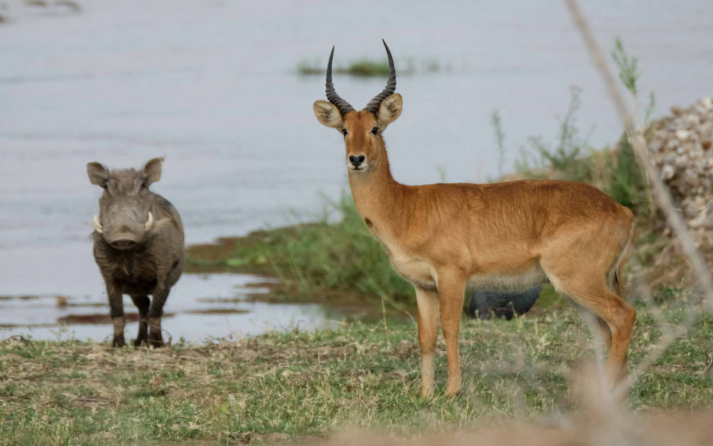 Am nächsten Tag machen wir einen Morning Walk mit einem Ranger. Eine schöne Vegetation, Pools mit Hippos, Krokodilen, Vögeln, Wasserböcken…