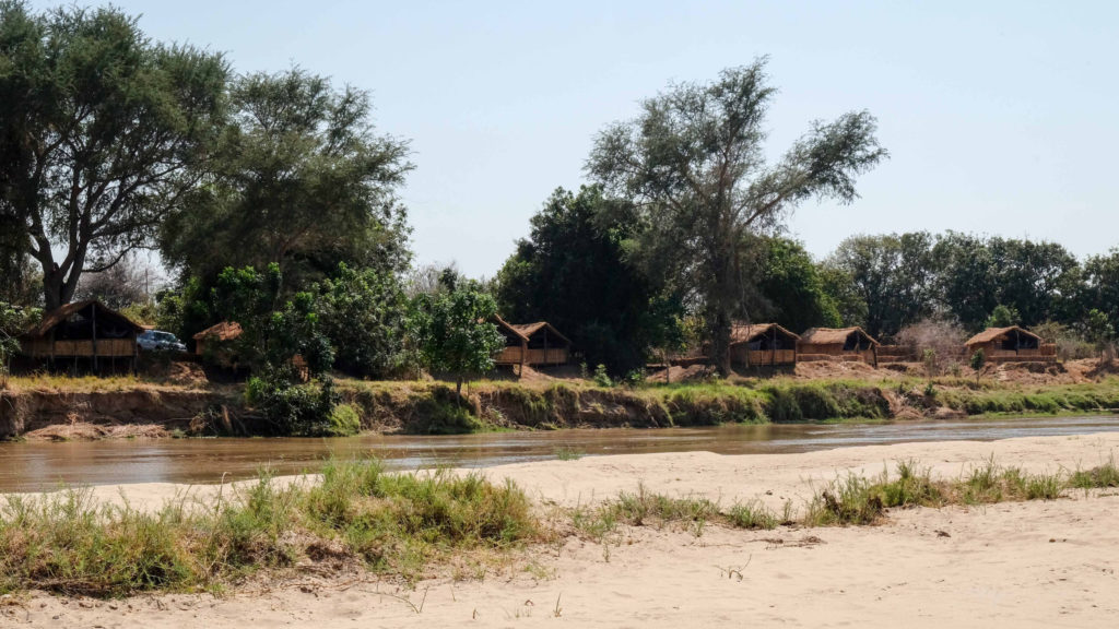 Das Buschcamp gefällt uns auf Anhieb. Schöne offene Strohhütten, direkt am Fluß gelegen und ein leckeres Abendessen entlohnen uns für die mühselige Fahrt von zwei Tagen.