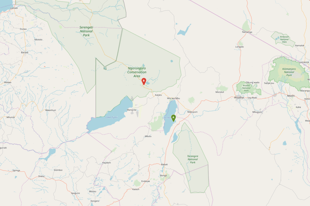 Riesige Vulkane haben den Ngorongoro-Krater gebildet, etwa halb so groß wie der Bodensee. Im Mittelpunkt des Hochlandes gelegen, ist der fast 600 m Tiefe Krater Heimat vieler Tiere. Wir sehen Löwen, unsere geliebten Warzenschweine, Zebras, Elefanten, Gnus…Der Kraterrand liegt auf etwa 2300 m Höhe, wo wir auf einer Spezial Campsite übernachten.