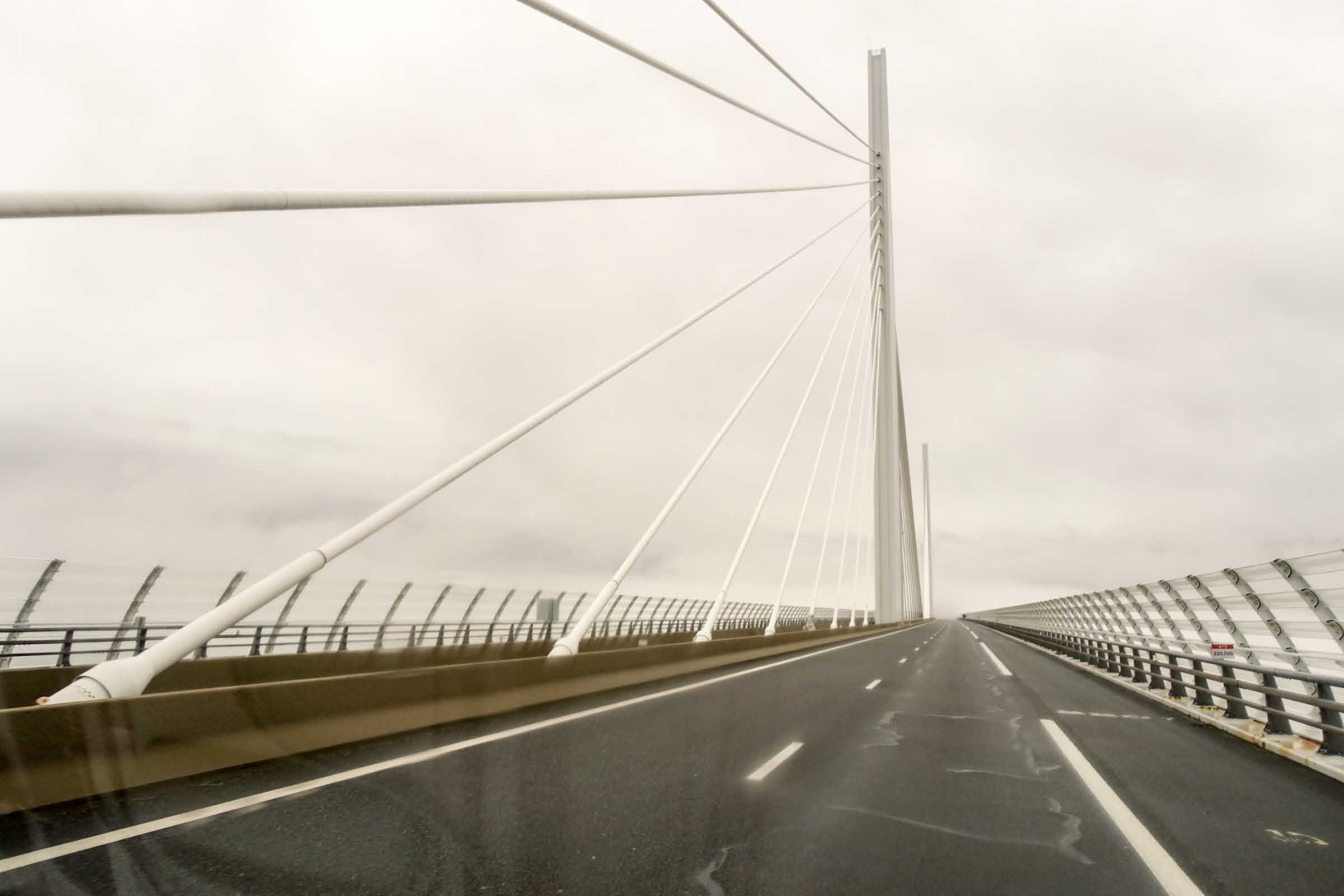Wir fahren über das Zentralmassiv 1100 m hoch durch die Cévennen (Weltkulturerbe) mit gigantischen Ausblicken – wunderschön.