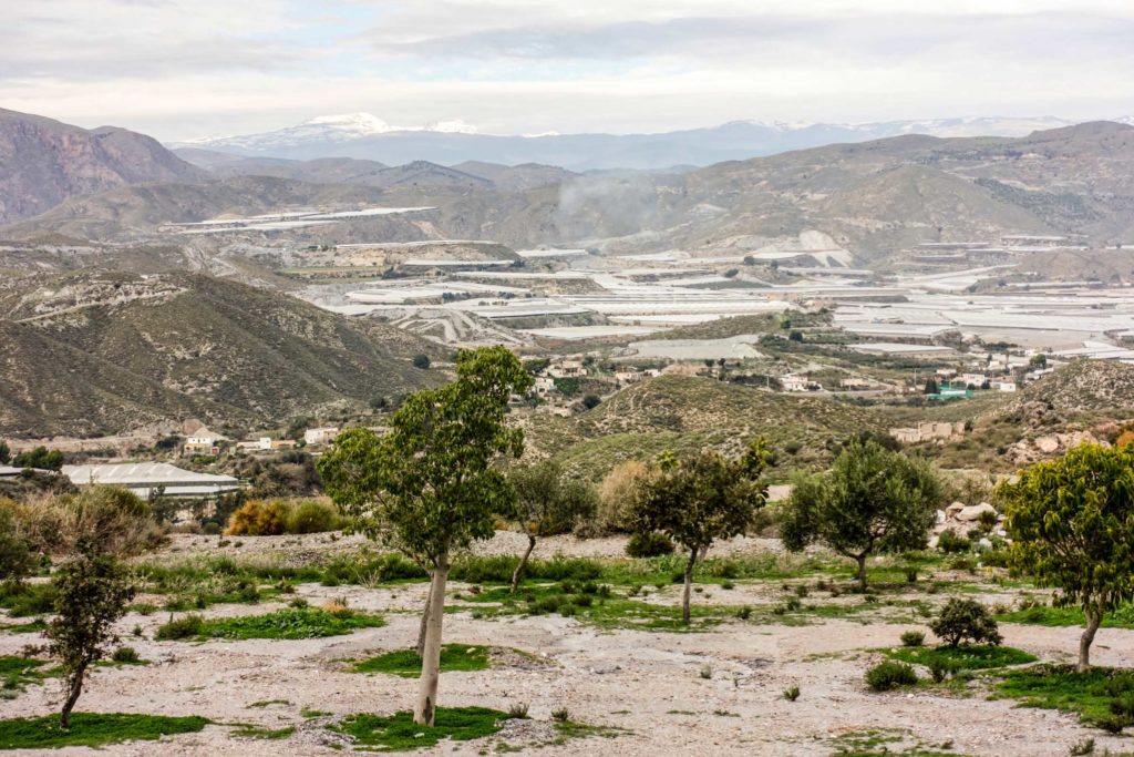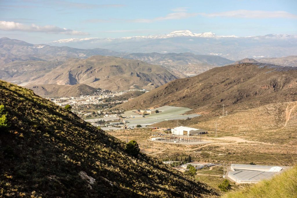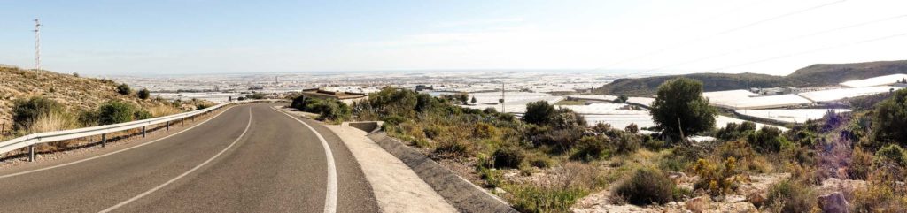 Wir machen eine große Fahrradtour in die Berge. Es geht die meiste Zeit auf kleineren Straßen entlang. Ein paar Kilometer geht es dann abseits der Straßen über die Berge. Teils sind die Trails so schwierig, dass wir schieben müssen. Aber mit unseren Mountainbikes macht es riesig Spaß. Einmal müssen wir an einer Hundemeute vorbei. Dietmar fährt ruhig und beherzt vor, ich folge ihm ebenso. Uns ist nichts passiert, gleichwohl weiß ich um das Pfefferspray in meiner Tasche. Wir fahren an riesigen Gewächshäusern mit Paprikapflanzen vorbei und treffen einen Schafhirten mit seiner Herde.