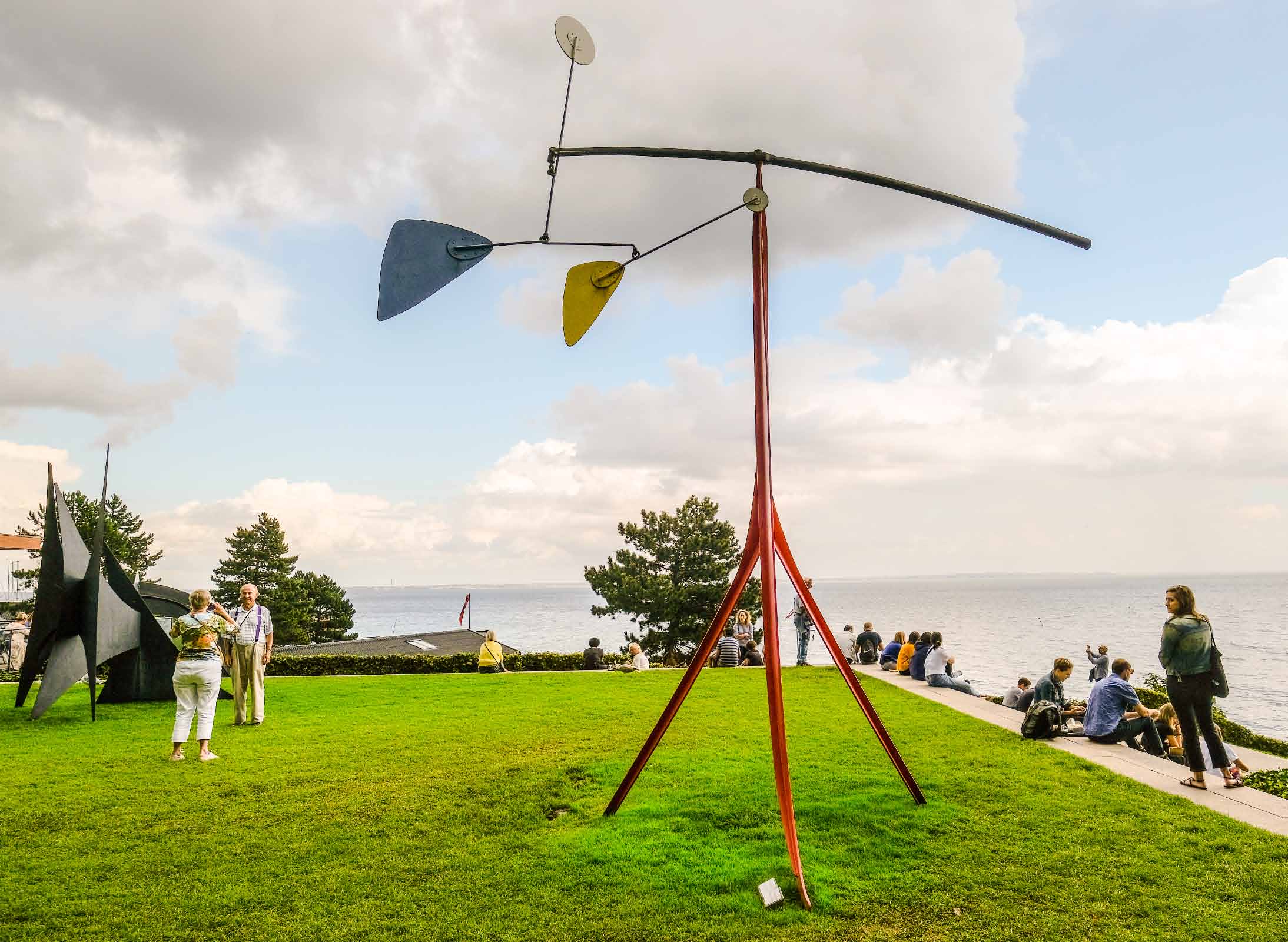 Dienstag machen wir eine lange Fahrradtour, insgesamt fahren wir 60 km. Es geht an der Küste entlang, teilweise durch Wälder und sehr schönen Wohngebieten zu dem spektakulären Louisiana Museum für moderne Kunst. Wahrscheinlich gibt es kaum ein Museum das so schön gelegen ist, ein Wechselspiel zwischen Kunst, Natur und Architektur.
