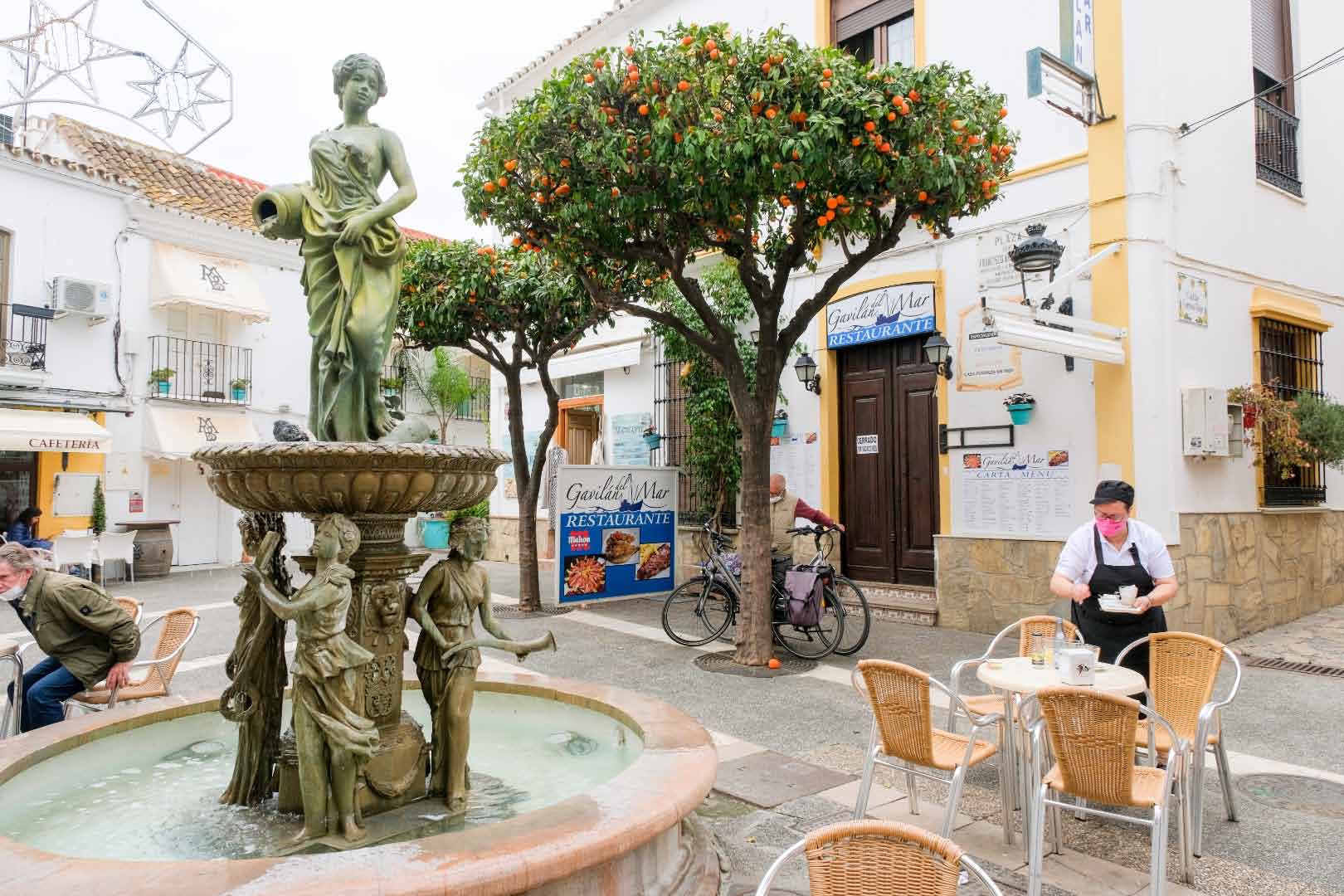 Estepona hat sich den Charme eines typischen andalusischen Dorfs mit ruhigen Plätzen, die mit Töpfen voller Blumen geschmückt sind, und weißen Häusern erhalten. Leider können wir den 15 km entfernten Ort nicht mit dem Fahrrad erreichen, weil zu wenig geeignete Straßen dazu zu Verfügung stehen. Gut, dass wir unseren Horwin haben mit dem wir auch auf belebten Straßen fahren können.