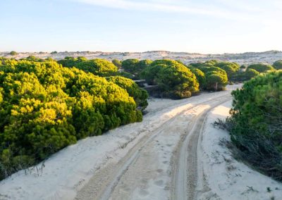 Hergefahren sind wir auch wegen dem Nationalpark Coto de Doñana der an der Costa de la Luz in Andalusien liegt und 54.252 Hektar groß ist. Man kommt nur mit einer gebuchten Tour in das Innere des Nationalparks rein. Diese Tour hat sich gelohnt. Die Dünenlandschaft ist einzigartig im Kontrast zu den Feuchtgebieten auf denen neben der Überwinterung tausender Zugvögel leben und seltene Vogelarten. Das Gebiet ist bekannt für die zweitgrößte Population des stark bedrohten Pardelluchses. Leider haben wir keinen Luchs gesehen, aber einige Hirsche, Rehe, Vögel und Wildschweine.