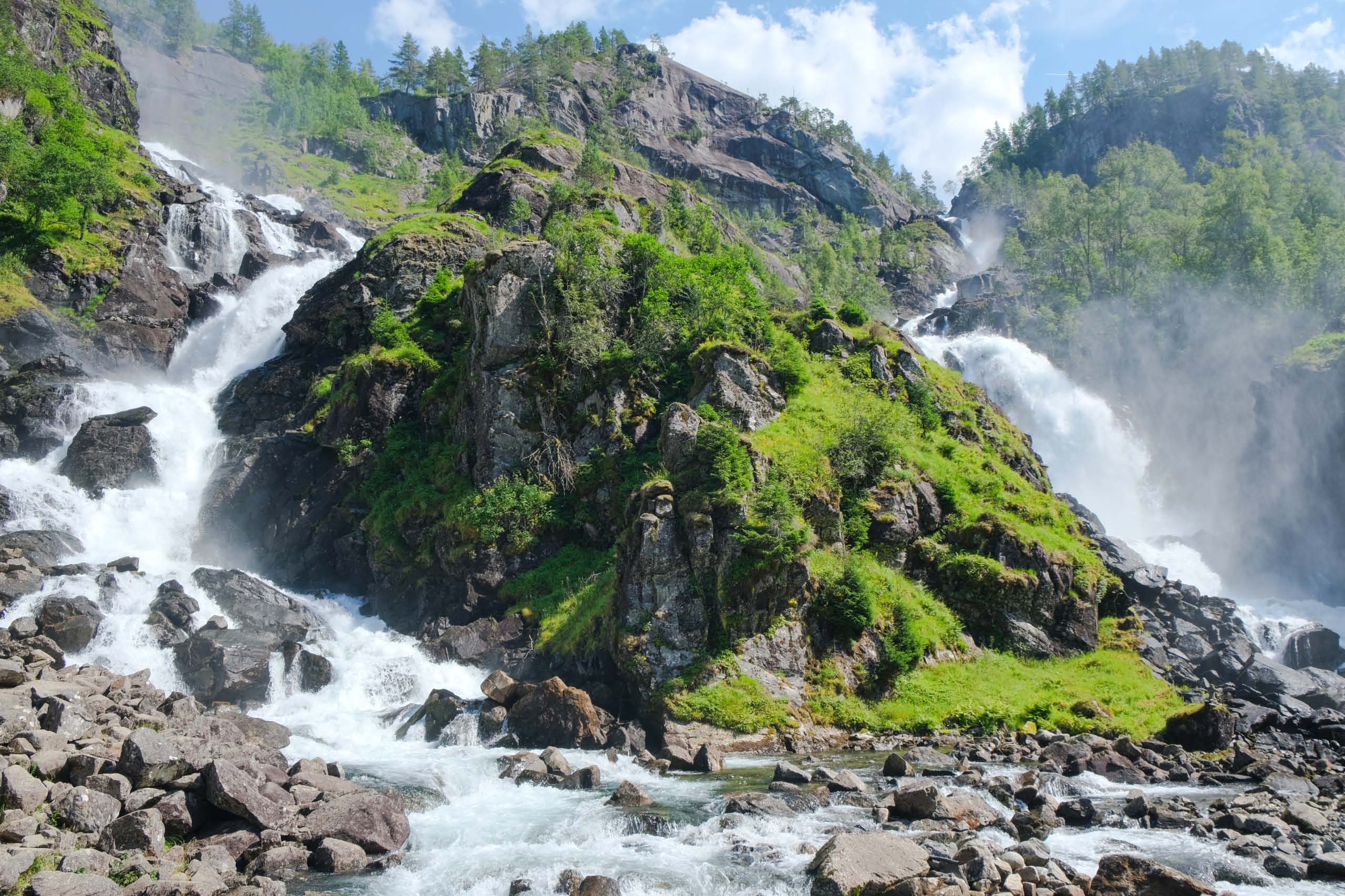 Die Reise geht weiter durch faszinierende Landstraßen. Viele Kurven und teilweise enge Straßen erlauben es nicht lange Strecken zurückzulegen. Vor Odda bewundern wir den Latefossen einen brausenden Doppelwasserfall direkt an unserer Strecke zu bewundern. In Odda finden wir einen Stellplatz direkt am Wasser und machen noch einen kleinen Spaziergang durch den Ort.