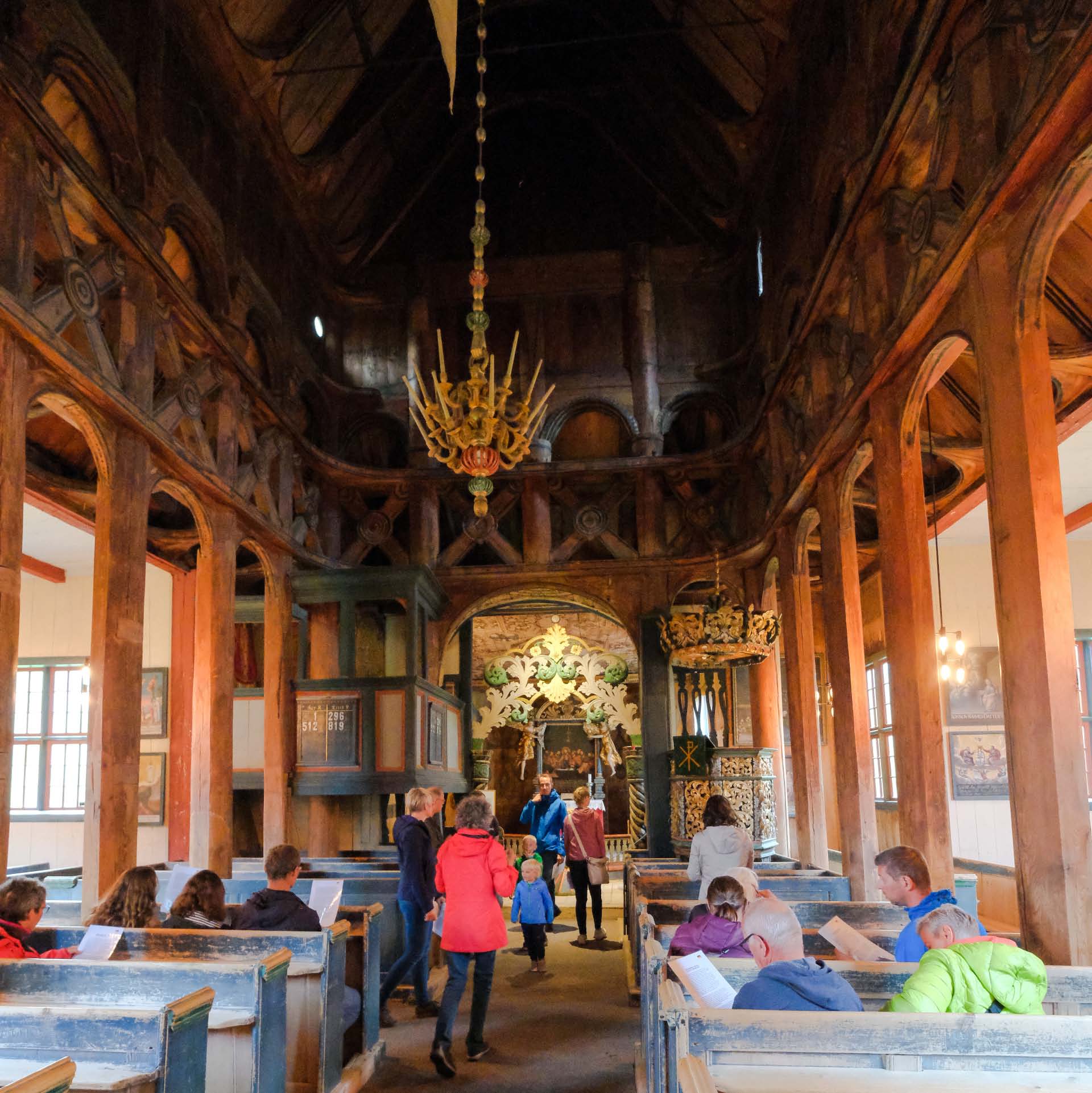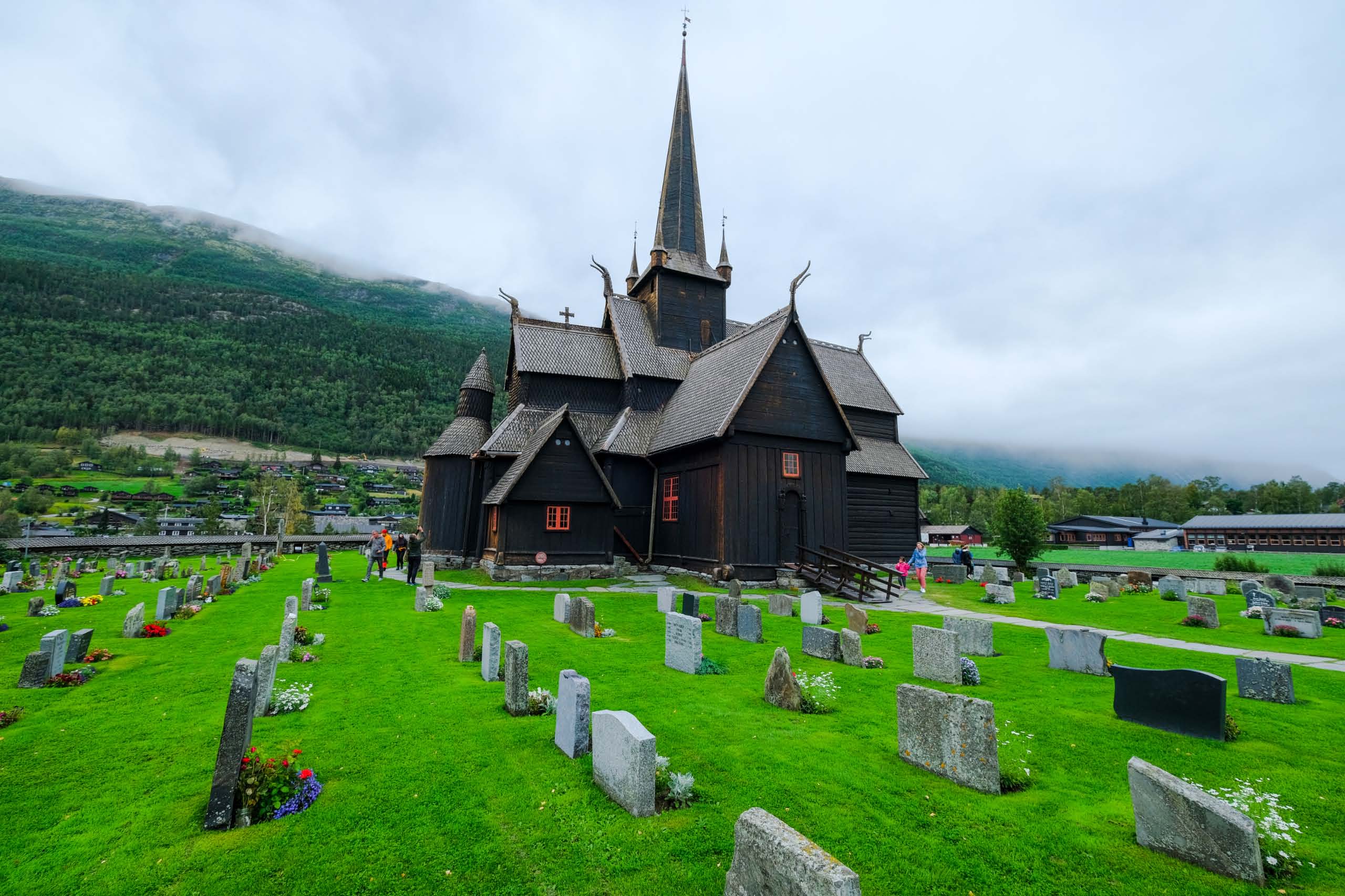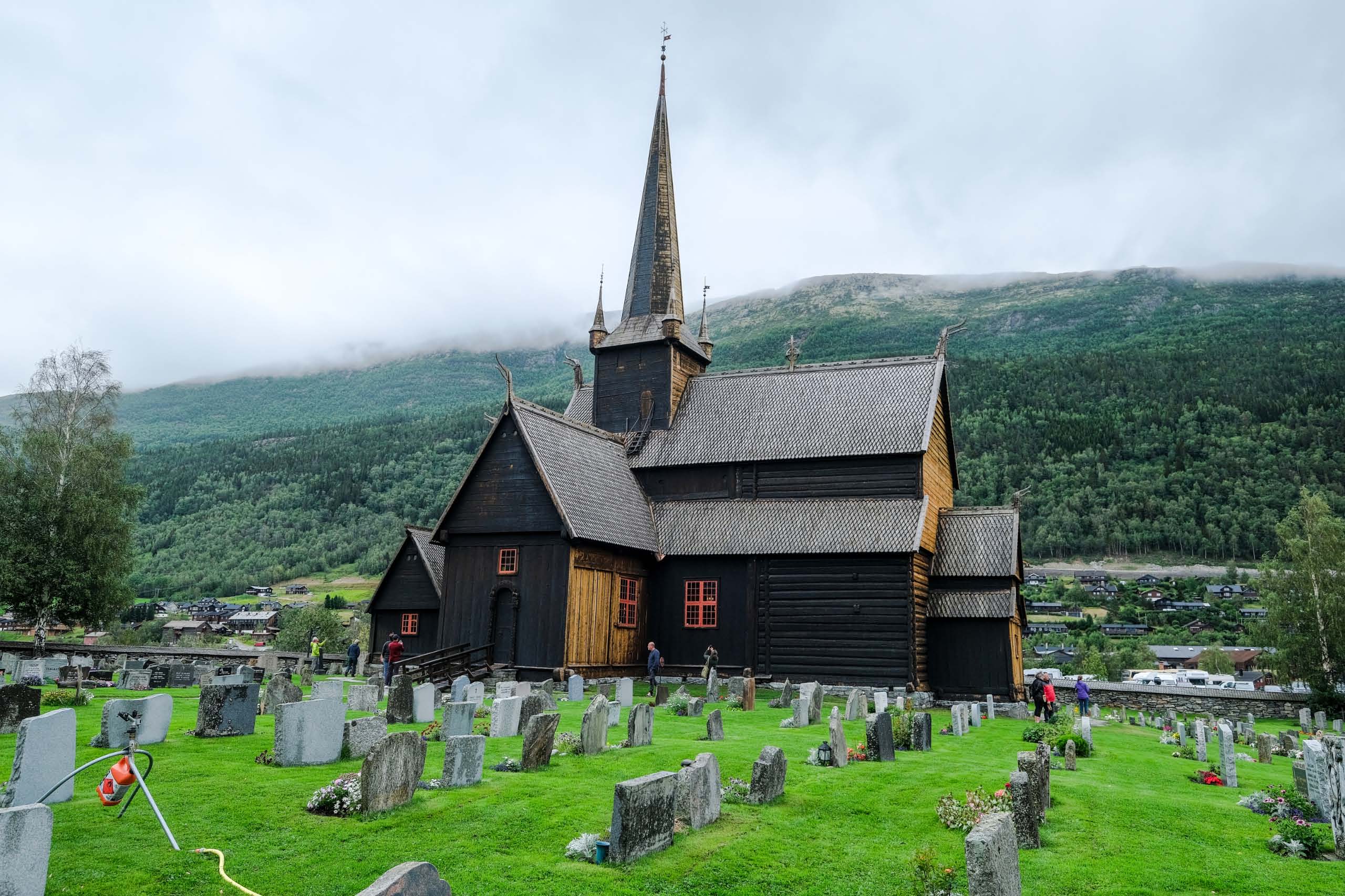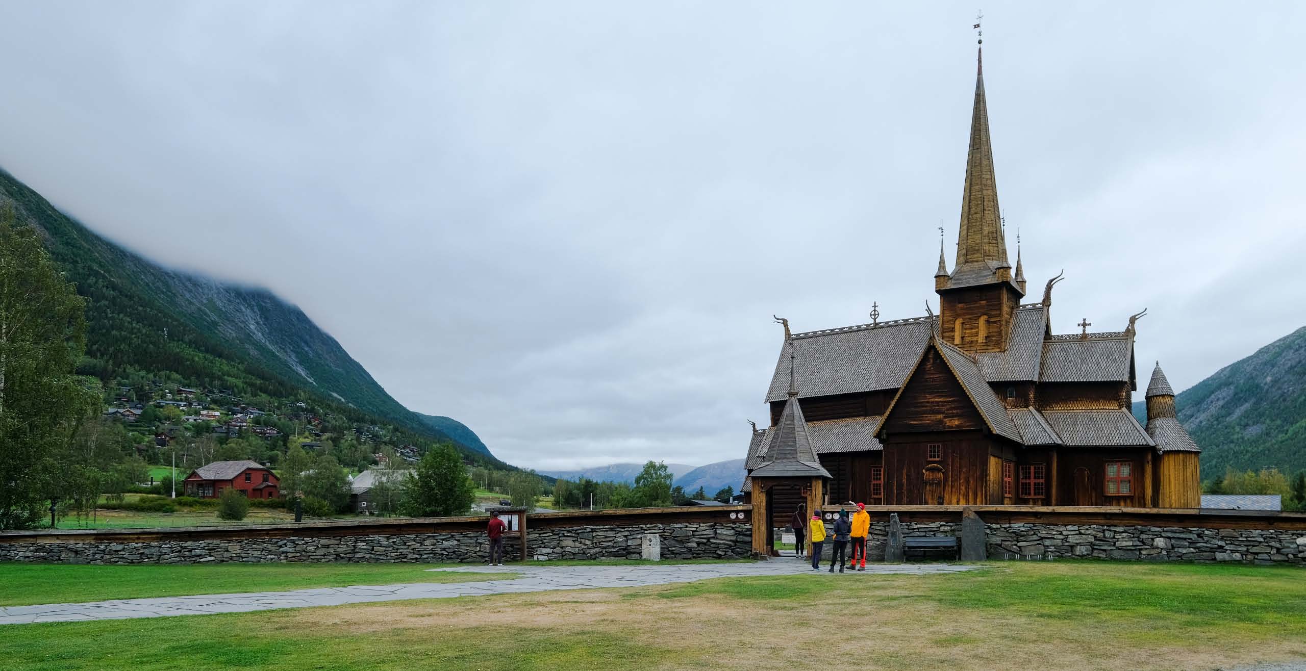 Bergmassiv des Sognefjell, Lom und die Stabskirche